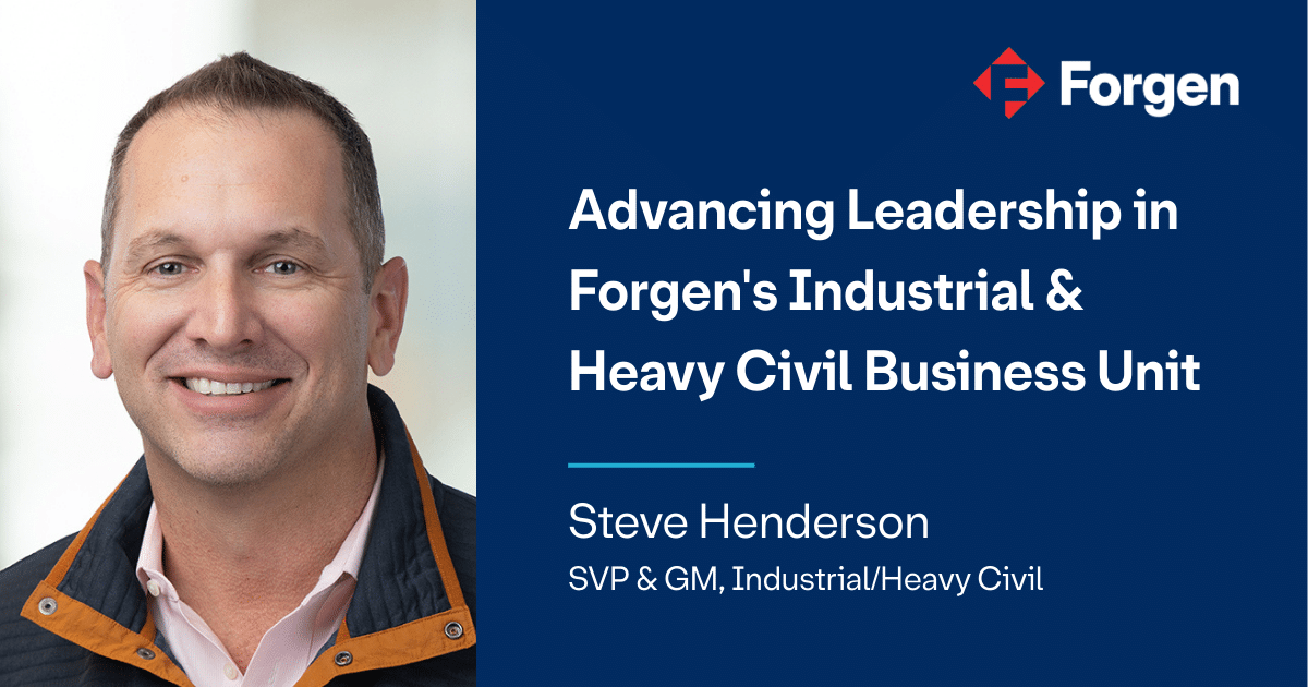 Forgen has promoted Steve Henderson to Senior Vice President and General Manager, Industrial/Heavy Civil, recognizing his leadership in expanding the company’s industrial operations.